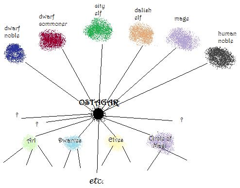 There are 6 entry paths available to the narrative in DA:O. These are the “Origins”. However, although there are these finite beginnings, they are able to be colored differently by the players themselves. The dialogue trees in the game offer different perspectives and responses from various game characters. Although in the Origin, the player-character is destined to eventually end up at the same place, they can do so with varied experiences. Rather than 6 individual primary paths, there are actually 6 probability clouds of primary paths. And this is only the Origin. After that, the diagram would get much more complicated.