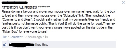 But I’m also respectful to my game buddies. I “like” their posts when I help them. That may mean I like 10 posts in a row within a few seconds. It’s social game etiquette and Facebook’s ticker is making me break it. If I could change who I shared my comments/likes with, this wouldn’t be a problem. But instead, I have no control over it. Now, my only choice is to either break etiquette and not “like” any of my buddies’ posts, giving the impression that I’m not helping and do not care, or else “like” them and spam the hell out of my friends’ tickers. No, thanks.
